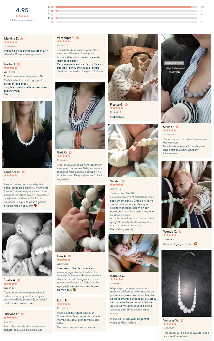 Merci à nos MintyWendy Mamas d'avoir pris le temps de partager un peu d'elles avec ces avis sur les produits MintyWendy - Le collier d'allaitement, de portage et de dentition français!.
